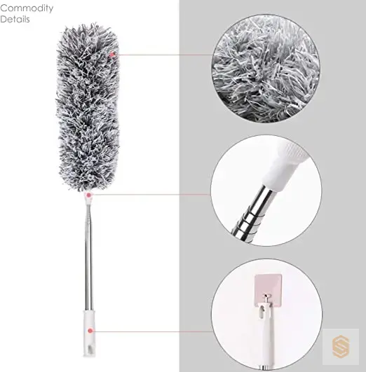 【Duster Easy to Clean】 : Want to clean the hypoallergenic duster? It couldn’t be simpler. Just slide the head off the telescopic wand, hand wash with warm or low heat water! Rotate the pole let the microfiber be fluffy. Place in ventilated place to dry. We’ve also designed the base of the extending rod with a hanging hole to make storage very space-friendly.