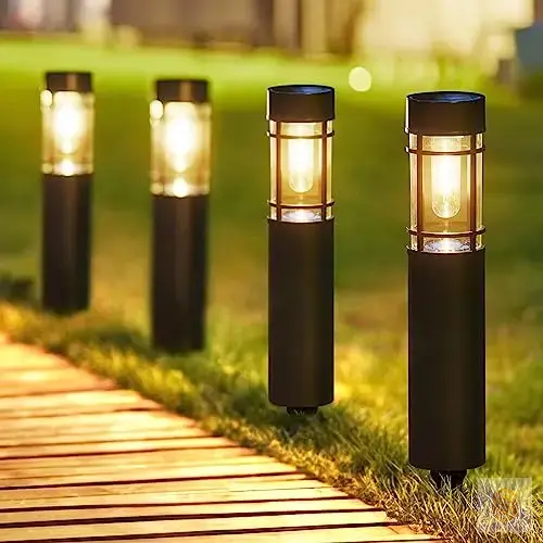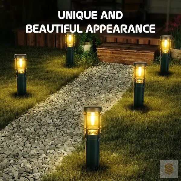 • This solar pathway light features an unique retro look and upgraded filament bulb that greatly meets your different lighting and decoration needs. The solar garden lights charge during the day and turn ON automatically at night. Bright warm white landscape lighting to creates a romantic and warm atmosphere for your garden and pathway.