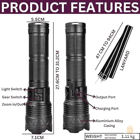 8. Powerful LED Flashlight Super Bright Spotlight Long Range Zoomable Lantern Emergency Torch Outdoor Tactical Light 2